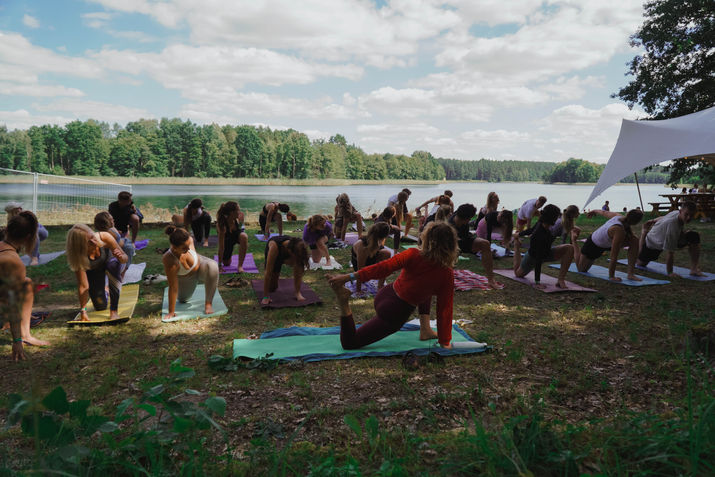 In August 2023, festival-goers at Saknys Fest had the chance to immerse themselves in nature and connect with each other through a Partner Yoga Workshop. Nestled in the tranquil woods and along the edge of a stunning lake, the workshop offered a serene setting for mindful movement and playful exploration.